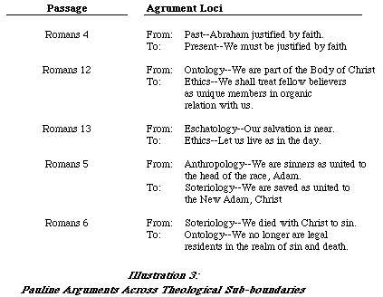 This method concerns the "structure" of one's theology --how the theological propositions qualify one another in ordinate relation. Structuring for "goodness-of-fit" is trying to order the propositions to fit the data "better than" other rival configurations. Paul is clearly trying to relate the particularity of the Law, justification by faith, the legal Mosaic system, Gentile salvation, etc. into a coherent whole to minimize interpretive difficulties. His attention to the issue of "law" in Romans shows his concern to so order the above concepts so as to "fit" the data of both Old Testament and the new revelation in Christ.