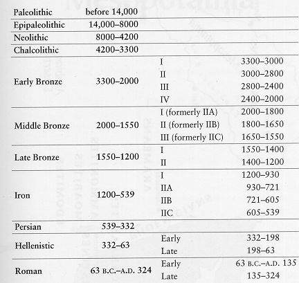 "Since they have hardly ever been manipulated, archaeological sources are usually more dependable than literary ones, but they are difficult to use. Hence, even the construction of a firm foundation for all further investigations, dating, or the confirmation of chronological contemporaneity or noncontemporaneity, causes considerable problems, especially when we take into account the role played by chance in the way evidence has been handed down to us...techniques such as the so-called carbon 14 method have not yet achieved a degree of dependability and accuracy that would allow us to use their results without some reservations....archaeological contexts only infrequently permit a clear demarcation between one period and the next. Drawing such dividing lines is thus very much a matter of the judgment of the individual scholar..." [EHANE:4,5]As indicated above, radioactive dating is generally not precise enough for the 'close work' within dating periods (e.g. Early Bronze III or Iron Age I)--the 'plus and minus' figures in chronological charts indicate this quite clearly [see COWA]. Radioactive methods require MONTHLY recalibration, and although used, generally yield divergent results for the same site. Pottery dating, often depended on heavily, is also subject to a number of complexities, not the least of which is diffusion (when a nearby border culture adopts the style of another), which sometimes can yield synchronization points between the two cultures' literary chronologies [TAPA:38, 39].